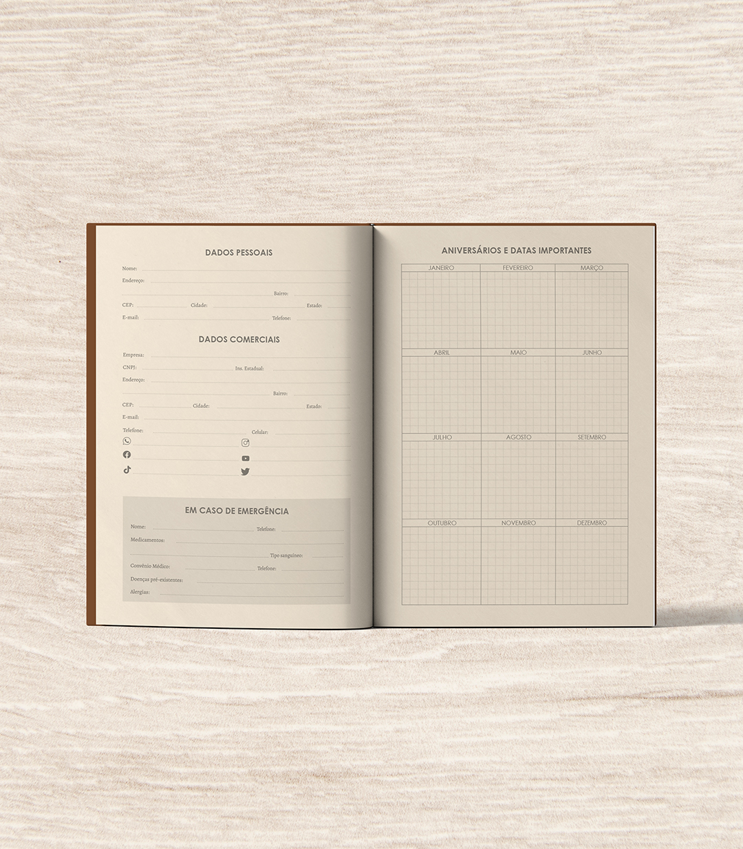 - Arquivo com 140 folhas (280 páginas), o que dará 280 folhas (560 páginas) no planner final
